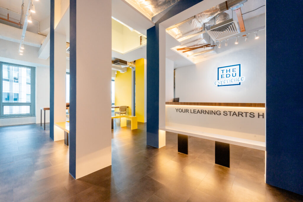 A tuition centre with a difference. The first of its kind that celebrates literally The EDUcation Experience that combines the ethos of its founders – knowledge without boundaries, as manifested in their logo. It offers topics and levels that do not limit to a specific age group, acknowledging that every individual learns at a different pace. This is the ‘buffet-style’ of classes that my Client first broached to me. An interesting concept that runs consistent with the idea of breaking-out-of-the-boundary (box). My Client took the effects of COVID-19 pandemic situation seriously, hence providing maximum flexibility with certain level of nomadism to accommodate any unpredictable changes is an important part of the brief. The digital interface within classrooms is one key learning experience with digital whiteboards and furniture easily re-orientated and reconfigured to accommodate the required social distancing in a blink of an eye.